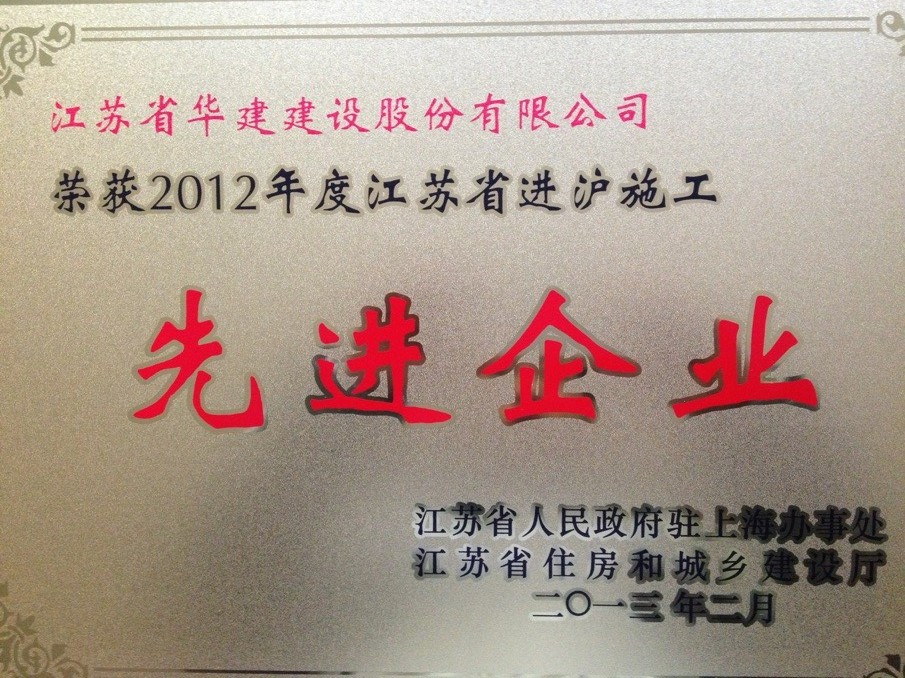 公司十獲“江蘇省進滬施工先進企業”稱號 時間:2013-03-06 5462 3月5日,在江蘇省政府駐滬辦、江蘇省住房和城鄉建設廳召開的2012年度江蘇進滬施工總結工作大會上,江蘇華建被表彰為“江蘇省進滬施工先進企業”,這已是第十次獲此殊榮;表彰會上,有1人被被評為優秀企業經理,有5人被評為優秀建造師,各有1人被評為安全管理先進個人、質量管理先進個人、經營管理先進個人。