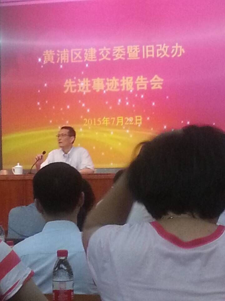 楊連山同志在上海黃浦區做先進事跡報告 時間:2015-08-13 5970 日前,上海區域公司外灘源項目部現場施工負責人楊連山同志應邀,在上海市黃浦區建設交通委暨舊改辦開展的“三嚴三實”專題教育系列活動中,做了專題為《愛崗敬業,服務社會,體現自身價值》的先進事跡報告。黃浦區建交委、舊改系統及來自建設工地的工人黨員180余人參加了報告會,邀請全國勞動模范張國樑、上海市先進工作者蔣昭瑜、上海市先進農民工楊連山等三位同志做先進事跡報告,楊連山同志的事跡報告打動了與會人員的心,引起了了大家的一致共鳴。