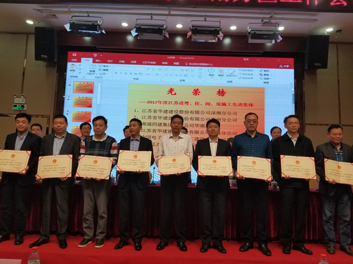 惠州公司獲評“2017年度江蘇出省施工先進集體” 時間:2018-03-26 3566 3月24日,2018年度江蘇建筑業南方區工作會議在深圳召開,會議表彰了一批江蘇出省施工先進集體及先進個人。惠州公司被江蘇省住房和城鄉建設廳評為“2017年度江蘇出省施工先進集體”,總經理周群利、技術處主任陳申高被江蘇省住房和城鄉建設廳評為“2017年度江蘇出省施工先進個人”;史泰龍、孔祥明、王興東分別被江蘇省人民政府駐深圳(廣州)辦事處表彰為2017年度江蘇進粵、桂、閩、瓊施工質量安全、經營財務和新聞報道先進個人。