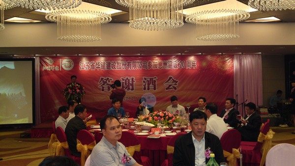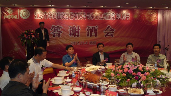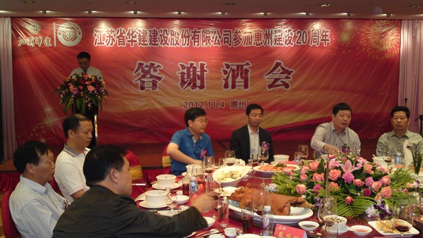 公司在惠隆重召開參加惠州建設20周年慶典暨答謝酒會 時間:2012-11-06 4644 公司在惠隆重召開 參加惠州建設20周年慶典暨答謝酒會 11月4日,公司在惠州凱賓斯基酒店王子飯店隆重召開參加惠州建設20周年慶典暨答謝酒會,公司副董事長、總經理宗有農主持酒會并作開場致辭。惠州市有關政府部門、部分合作方企業的負責人,華建聯盟成員單位負責人,公司董事、監事和高管等130余人出席慶典。惠州公司總經理華恒榮介紹了公司參加惠州建設20年的有關情況。惠州市工商聯主席、公司戰略合作伙伴恒宇實業集團公司董事長楊滿芳代表合作方發言,惠州市住房和城鄉規劃建設局副局長陳訓政代表政府主管部門致辭,分別對江蘇華建進駐惠州施工、參加惠州建設20周年表示祝賀。公司董事長陸金龍代表公司總部對惠州市有關政府部門、相關合作方和社會各界人士給予公司的關心和支持表示誠摯的感謝,并表達了進一步加大支持力度、加強戰略合作、加快科學發展的意愿。 (峰年 文/圖)