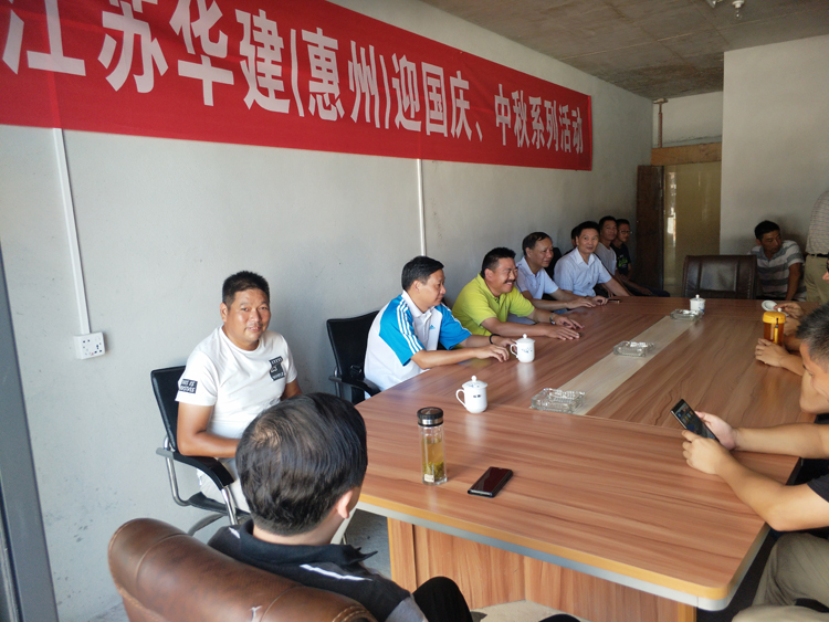 喜迎國慶、中秋,促進交流、互動 時間:2017-10-06 2867 10月3日,惠州公司機關全體在惠人員在總經理周群利的帶領下,前往公司直管項目部對節日堅守崗位的人員進行了慰問,并與他們進行了拓展、益智等互動活動。活動期間,周總與項目部人員進行了座談,并代表公司對節日堅守崗位的人員表示親切的慰問,詳細了解他們節日的工作、生活安排情況。同時要求項目部負責人要合理安排好大家的工作和生活,讓他們過一個喜慶、祥和的節日。會后,公司機關全體人員與項目部在崗人員開展了羽毛球、拔河、摜蛋、象棋等拓展、益智活動。通過這次活動,加強了交流,增加了了解,提升了凝聚力。