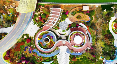 華建園以“綠色建造、美好家居”為主題,參與2021揚州世界園藝博覽會。該園從空中俯瞰呈現“魯班墨斗”造型,巧妙將墨輪、墨池、班母等墨斗主要構件進行分解提取,經過現代手段重組形成建筑主體,配有屋頂花園、觀景棧道、臨水花廊、趣味滑梯、層疊水景、后花園、親水平臺等景觀設施,館內采用“雙館聯展”形式,分為是智能館和綠建館,分別體現當代建筑未來走向和綠色建筑環保理念。自開園以來,吸引百萬游客駐足觀賞,成為打卡的網紅景點。