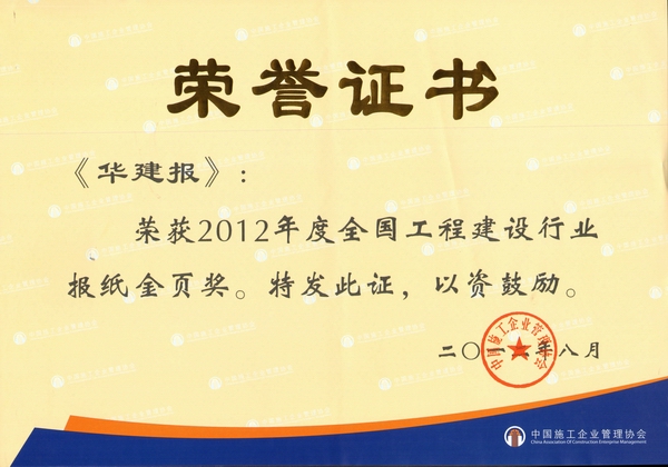 《華建報》連續(xù)三年榮獲“金頁獎” 時間:2012-08-14 4584 8月9日,中施企協(xié)發(fā)布《關(guān)于表彰2012年度全國工程建設(shè)行業(yè)“金頁”報刊和“銀頁”報刊的決定》,公司主辦的《華建報》連續(xù)第三年被評為全國工程建設(shè)行業(yè) “金頁”報刊。《華建報》創(chuàng)刊五年來,積極發(fā)揮窗口作用、平臺作用,以反映公司在技術(shù)創(chuàng)新、管理創(chuàng)新、體制創(chuàng)新和市場開拓等方面的新動態(tài)、新經(jīng)驗和新成果為主要內(nèi)容,在宣傳企業(yè)形象、凝聚員工精神、塑造企業(yè)文化和促進行業(yè)交流等方面起到了積極顯著作用,受到社會各界好評。