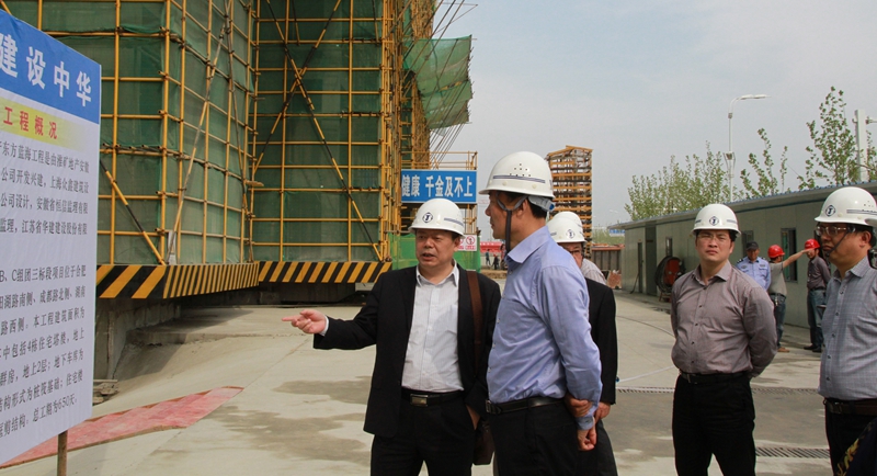 聞道才副市長赴安徽分公司視察東方藍海項目 時間:2014-04-11 3749 4月10日下午,揚州市副市長聞道才一行赴安徽分公司視察了合肥東方藍海B、C組團三標段項目。公司副總經理陸俊、副總經理、惠州公司總經理華恒榮陪同參加。 在項目現場華恒榮副總經理向來訪領導簡要介紹了江蘇華建在安徽市場的發展戰略及東方藍海B、C組團三標段項目的施工情況。聞市長對施工現場、施工組織非常滿意,并再三強調要抓好安全工作,爭創優質工程,為揚州建筑業在安徽市場的發展做出積極貢獻。