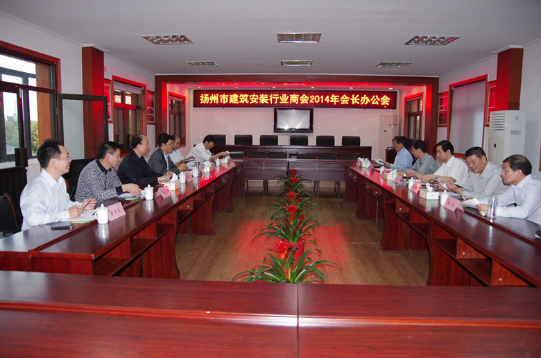 10月10日下午,揚州市建筑安裝行業商會2014年會長辦公會在江蘇儀建集團會議室召開,11家會長和副會長單位的負責人參加會議,陸金龍會長主持會議,市委統戰部副部長、市工商聯黨組書記、常務副主席趙振東出席會議。