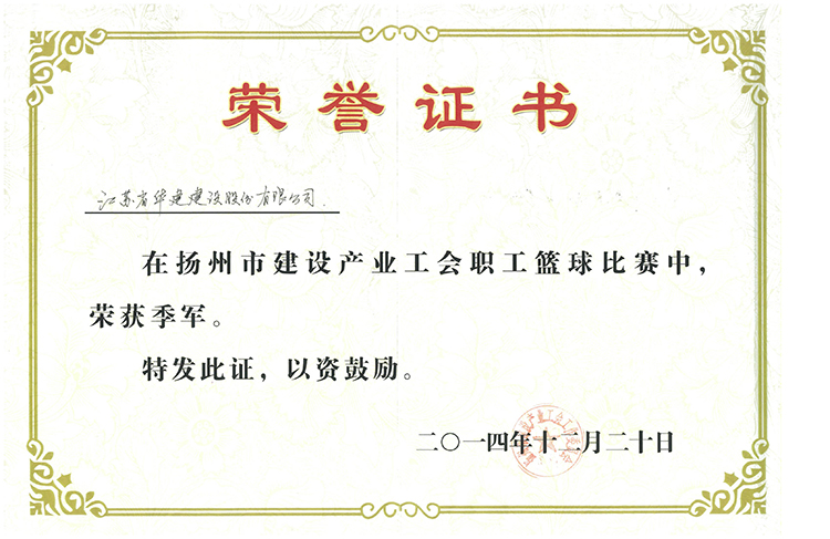 公司籃球隊獲市建設產業工會籃球賽季軍 時間:2014-12-22 4564 12月20日,在揚州市職業大學瘦西湖校區體育館舉辦的“揚州市建設產業工會籃球比賽”中,由總部機關、設計院和檢測中心職工組成的公司籃球隊努力拼搏、奮勇爭先,以兩勝一負的戰績榮獲比賽季軍。 建設產業工會田主席為公司籃球隊頒發獎狀