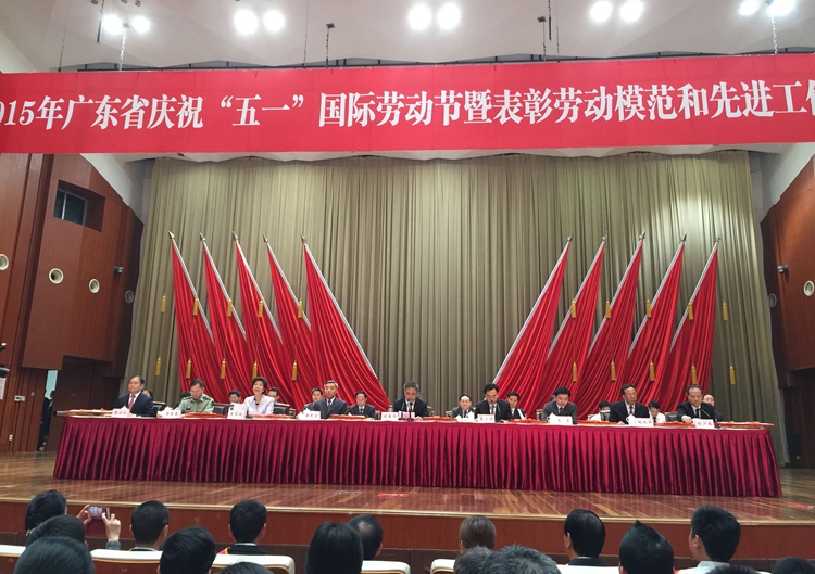 4月27日上午,2015年廣東省慶祝“五一”國際勞動節暨表彰勞動模范和先進工作者大會在廣州白云國際會議中心舉行。廣東省委書記胡春華、省長朱小丹等領導參加會議。
