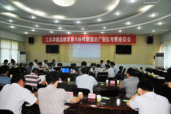 現場考察結束后,廣安區委書記文建平親自主持,在區政府七樓會議室舉行了“江蘇華建品牌發展與協作聯盟赴廣安區考察座談會”。調研組觀看了廣安區宣傳片及官盛新區概念規劃設計宣傳片,并聽取了吳榮勝區長對廣安的推介講話。華建聯盟常務負責人吳士茂在座談會的致辭中說,廣安是著名的英雄之鄉,是改革開放總設計師鄧小平的故鄉,江蘇華建近年來懷著對小平同志的崇敬之情,感佩于廣安領導和人民的熱情,積極參與廣安的經濟建設,貢獻自己的一份力量。這次特地邀請了華建聯盟部分成員單位的企業家到廣安學習調研,進一步尋找項目合作的機會,這是雙方加強深度合作、促進全面發展的共同愿望。華建在廣安的項目開展非常順利,政企合作非常愉快,這也給了我們很大的信心和決心,希望能夠在廣安這片熱土上,發揮華建聯盟企業的特長和優勢,尋求更多的合作空間,為廣安的經濟建設和社會發展貢獻更大的力量,為小平同志的家鄉添磚加瓦,造福廣安黎民百姓。他期望通過當天短暫的學習交流機會和今后進一步的聯絡溝通,盡快找到雙方共同的合作需求,托起共同的事業。他還簡單介紹了華建聯盟的基本情況、經營理念和運作機制。江蘇華建常務副總、華建地產和聯盟投資董事長程杰,中機環建集團董事長巫金林作為客商代表作了交流發言,表示通過調研考察,對廣安區特別是官盛新區的未來發展感到很振奮,進一步堅定了搞好現有項目的決心和加大投資的信心。文建平書記在最后的講話中高度評價江蘇華建在廣安項目上的建設投入力度,認為華建領導重視,工程進度快、質量好,提升了廣安的城市形象。他希望在已經形成的良好合作基礎上,與華建、華建聯盟進一步加強對接,架起深度合作的橋梁,在房地產開發、都市產業、工業地產、總部經濟等方面尋求更多合作機會,實現雙贏。