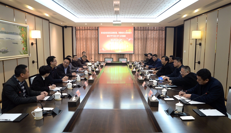 在陸董事長的陪同下,鄭書記一行參觀了公司企業(yè)展示中心。隨后賓主雙方在會議室進行了座談。陸董事長向客人簡要介紹了公司發(fā)展歷程以及施工、地產(chǎn)、金融、多元四大板塊的運行情況,并就公司的分配機制、管理理念等向大家作了分享。鄭書記介紹了岳池縣地域特征、經(jīng)濟發(fā)展等方面的情況,他提出雙方要通力合作,全力以赴,以最佳節(jié)奏,最好質(zhì)量把項目建設好,同時要以該項目為契機,建立深入長久、親密互信的戰(zhàn)略合作,利用華建的優(yōu)質(zhì)資源為岳池的經(jīng)濟發(fā)展助力,他還希望華建能支持當?shù)胤鲐毠ぷ鳎ㄟ^樹立標桿,形成可復制可推廣的模式。陸董事長表示華建將調(diào)集精干力量組成強有力的項目班子,共同發(fā)力,把該項目打造成典型項目、標桿項目,并通過地產(chǎn)招商、產(chǎn)業(yè)招商等對口招商形式做好資本嫁接,把岳池經(jīng)濟發(fā)展推向更高臺階。針對對口扶貧工作,重慶公司要做好實地考察和調(diào)研,結合區(qū)域特點和資源做好規(guī)劃并提供支持,形成地方經(jīng)濟可持續(xù)發(fā)展。座談會上,公司常務副總程杰和銀泰投資董事長康偉共同簽署了項目公司合作協(xié)議書。隨后,聞道才副市長與大家進行了簡短會面,他對ppp項目公司成功組建表示祝賀,勉勵公司創(chuàng)新模式,規(guī)范運作,走出新路,進一步樹立標桿,引領地方建筑企業(yè)抱團前行。