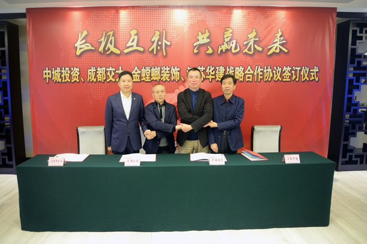 中城投資是國內(nèi)領(lǐng)先的專業(yè)化房地產(chǎn)私募投資管理機構(gòu);金螳螂是中國裝飾裝潢施工領(lǐng)域領(lǐng)軍企業(yè)和首家上市公司;成都交大地產(chǎn)是在科技住宅領(lǐng)域占有領(lǐng)先地位的專業(yè)住宅開發(fā)商。此次簽約將房地產(chǎn)上下游產(chǎn)業(yè)的四家單位融為一體,將充分發(fā)揮各自專業(yè)領(lǐng)域業(yè)務(wù)優(yōu)勢,整合資源,長板互補,以項目為依托,在一二線城市以住宅、寫字樓和酒店式公寓為主進行全方位項目開發(fā)和建設(shè),并逐步形成由項目投資向企業(yè)投資轉(zhuǎn)化的良好生態(tài)。正如中城聯(lián)盟前輪值主席、成都交大董事長孟剛所說,此次四家合作具有示范意義,這種模式在聯(lián)盟內(nèi)值得推廣。在華建企業(yè)展示中心,四家領(lǐng)導(dǎo)交流管理心得,暢談行業(yè)發(fā)展,共商聯(lián)合之勢。座談會后,四家大佬共同簽署了戰(zhàn)略合作協(xié)議書。
