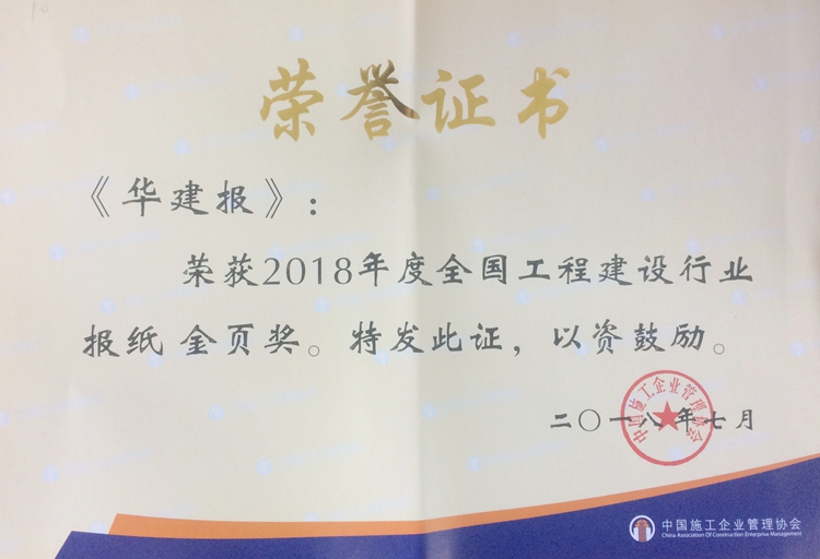 《華建報》再獲“全國工程建設行業報紙金頁獎” 時間:2018-07-23 5254 7月18日至20日,中國施工企業管理協會2018年度工程建設企業文化論壇暨通聯員工作會議在蘇州召開。公司內刊《華建報》再度獲評“2018年度全國工程建設行業報紙金頁獎”,公司翟法寶獲評“2018年度中國施工企業管理協會優秀聯絡員”。