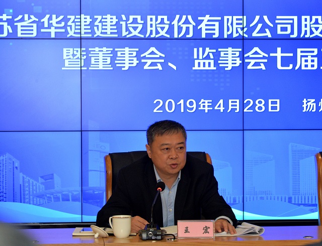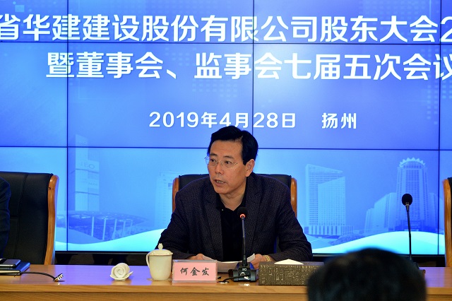 4月28日,江蘇華建股東大會2019年會暨董事會、監事會七屆五次會議在揚州華城科技廣場召開。公司股東單位代表和董事、監事出席會議,公司高級管理人員、各分支機構和總部各部室負責人、律師團律師列席會議,王宏董事長主持會議,揚州市副市長何金發到會并致辭。