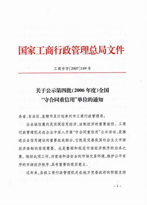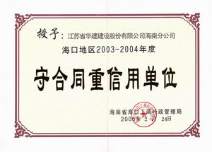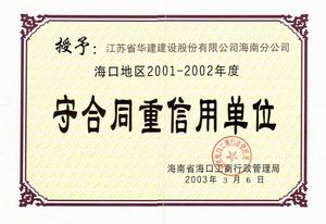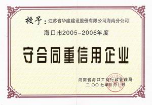 企業誠信榮譽 時間:2019-01-01 9058 2001-2002年度海口市守合同重信用 2003-2004年度海口市守合同重信用 2005-2006年度海口市守合同重信用 2002-2004年度海南省守合同重信用 2006年度全國守合同重信用1 2006年度全國守合同重信用2 2006年度全國守合同重信用3 2006年度全國守合同重信用4 2012年度海南省守合同重信用