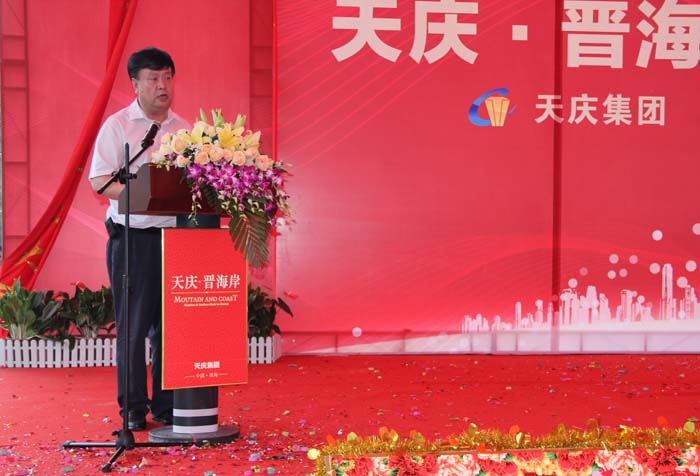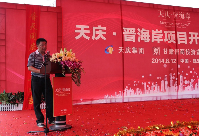在開工奠基儀式上,天慶集團董事長韓慶發表了熱情洋溢的致辭,他簡要介紹了天慶集團和甘肅晉商投資發展股份有限公司的相關情況,表示將以天慶·晉海岸項目為依托,全力進軍珠海市場,為珠海房地產市場開發貢獻自己的綿薄之力。