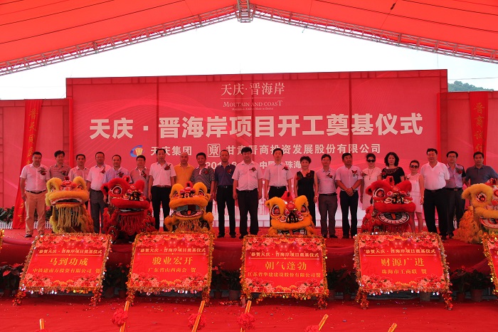 8月12日上午,由天慶集團、甘肅晉商投資發展股份有限公司共同開發的、江蘇華建珠海區域公司承建的天慶·晉海岸項目舉行隆重的奠基儀式。天慶集團董事長韓慶、甘肅晉商投資發展股份有限公司股東代表和金灣區常務副區長管偉、三灶鎮有關領導、珠海商界代表以及相關媒體等近300人參加奠基儀式。