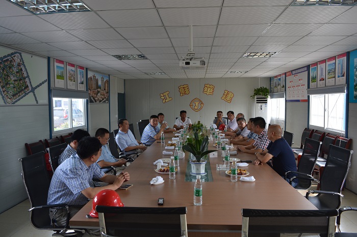 王總一行在施工現場實地了解了項目概況、項目各單項工程進展情況及工期計劃安排等內容,他對工程當前進度和形象表示滿意,指出廣安項目各方面工作很出色,現場“令人震撼”。在現場會議室,王總與項目主要管理班子召開了專題座談會,就如何推進項目建設廣泛聽取意見并進行了重點分析,對項目現階段存在的問題提出了寶貴的建議。他勉勵大家要再接再厲,確保工程質量,圓滿完成項目建設目標,在西南市場進一步打響和傳播華建品牌。最后,王總還介紹了海南區域公司當前的發展情況,并邀請與會人員赴海南公司考察交流。