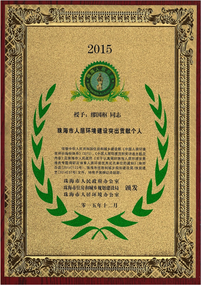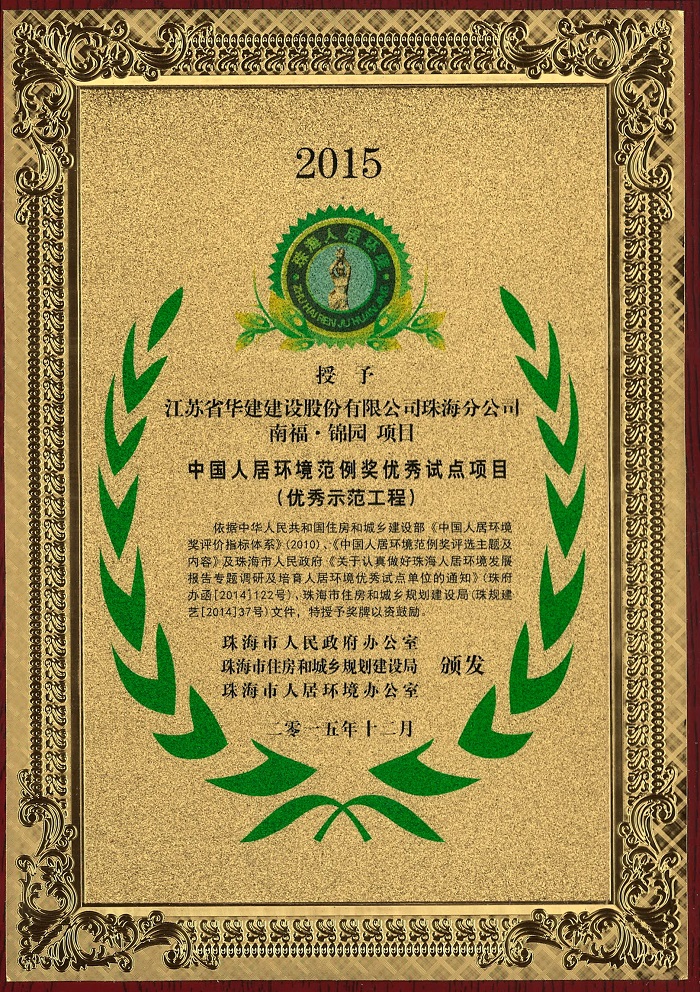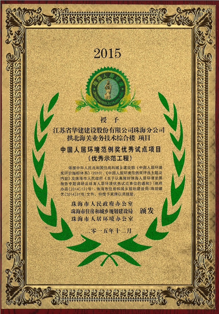 公司榮獲珠海市人居環境建設突出貢獻單位等四項表彰 時間:2015-12-22 4677 近日,珠海公司被珠海市人民政府辦公室、珠海市住房和城鄉規劃建設局和珠海市人居環境辦公室聯合表彰為珠海市人居環境建設突出貢獻單位(優秀建筑施工企業),繆國樞總經理被授予珠海市人居環境建設突出貢獻個人稱號,由我公司承建的拱北海關業務技術綜合樓及南福·錦園項目榮獲中國人居環境范例獎優秀試點項目(優秀示范工程)。