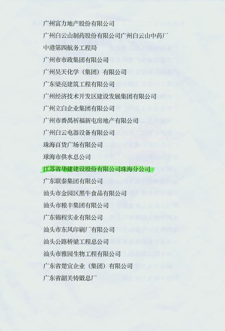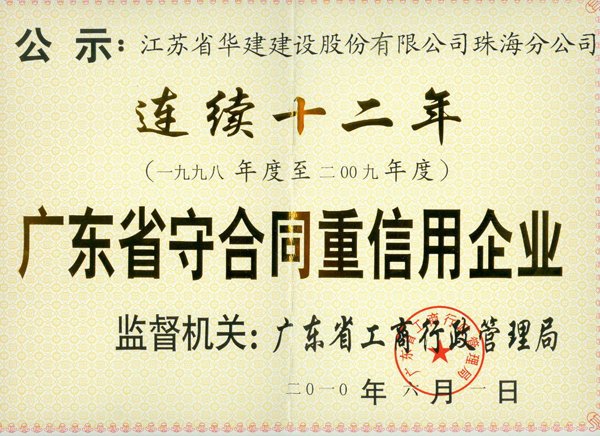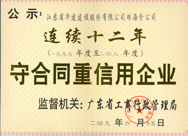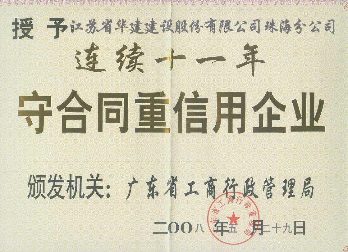 2005年度珠海守合同重信用企業2006年度珠海守合同重信用企業2007年度珠海連續十年守...