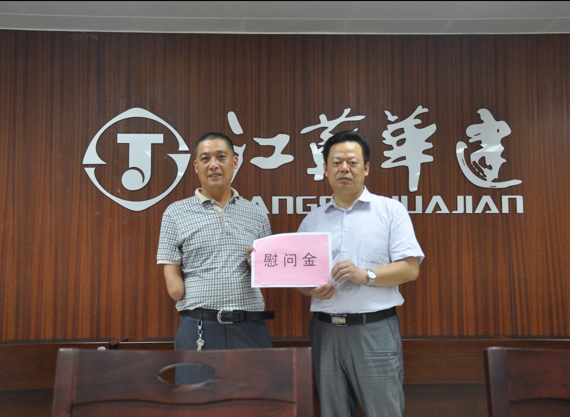 惠州區域公司慰問傷殘員工 時間:2013-08-06 3989 夏日炎炎,酷暑難耐。江蘇華建副總經理、惠州分公司總經理華恒榮率分公司工會親切慰問了在惠州分公司第九工程處工作的傷殘員工居家應(居家應90年代在寶應工作期間,不慎失去了右膀,被定為三級傷殘)。慰問中,華總詳細了解他的生活、工作情況,并向他發放慰問金,同時要求九處在工作、生活上給予一定的關心。居家應感謝組織對他的關心,表示身殘志不殘,更加積極努力的工作,不辜負組織的期望。惠州分公司總會計師高正金,分公司工會主席王健陪同慰問。