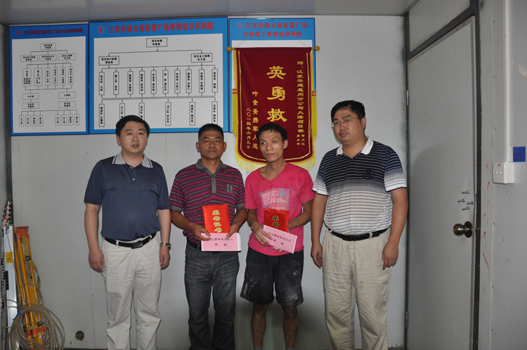 會(huì)上,惠州公司副總經(jīng)理、總工程師龐文榮、分工會(huì)主席王健代表分公司經(jīng)理室和工會(huì)向肖小平、黃小江兩位同志發(fā)放“見(jiàn)義勇為先進(jìn)個(gè)人”證書(shū),向大隆財(cái)富廣場(chǎng)項(xiàng)目部發(fā)放“見(jiàn)義勇為先進(jìn)集體”證書(shū),并給予一定數(shù)額的現(xiàn)金獎(jiǎng)勵(lì)。同時(shí)號(hào)召大家向兩位同志學(xué)習(xí),學(xué)習(xí)他們舍己救人的崇高精神,學(xué)習(xí)他們樂(lè)于助人的高尚品德,為樹(shù)立公司良好精神面貌、傳遞社會(huì)正能量做出新的貢獻(xiàn)。