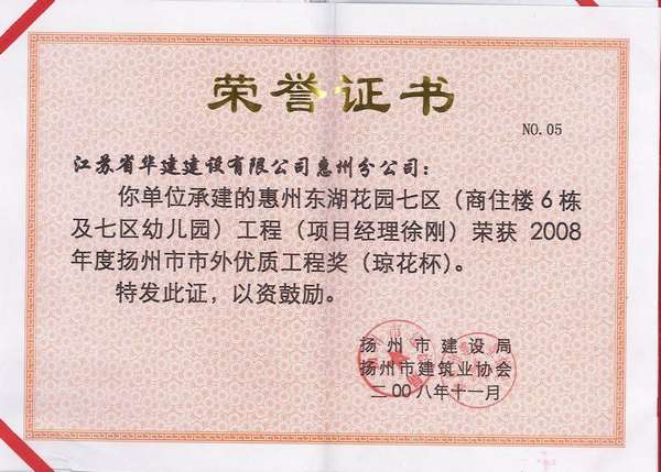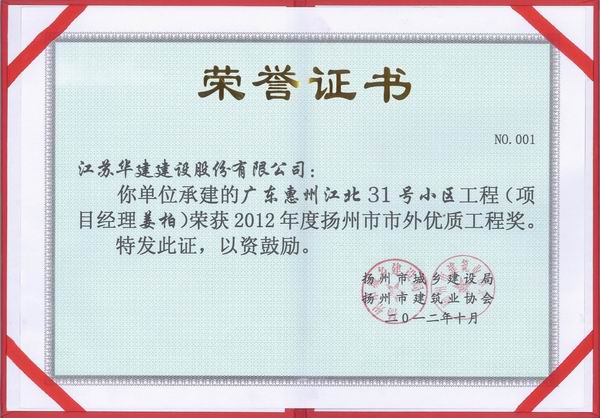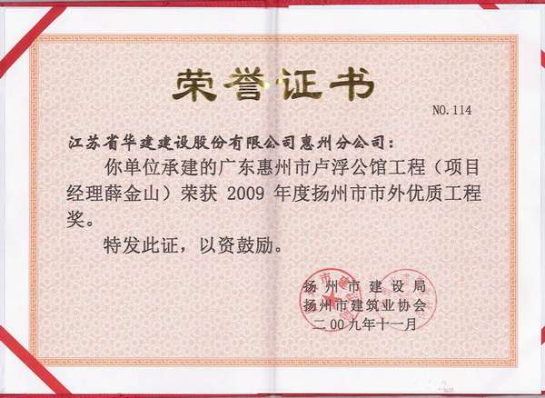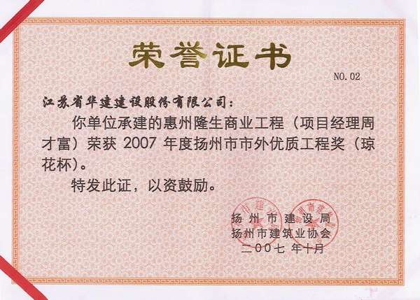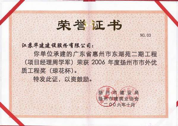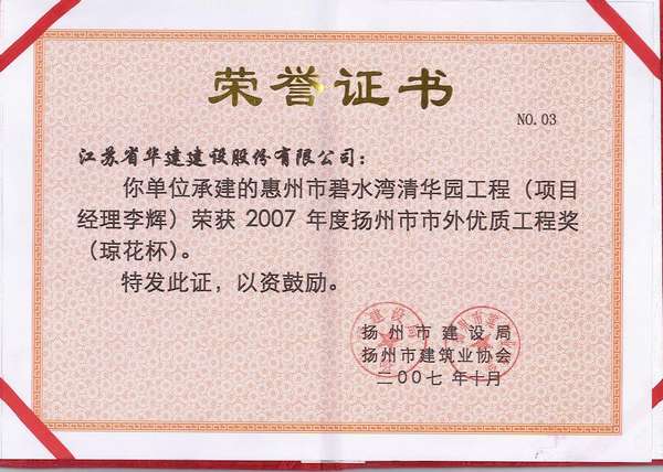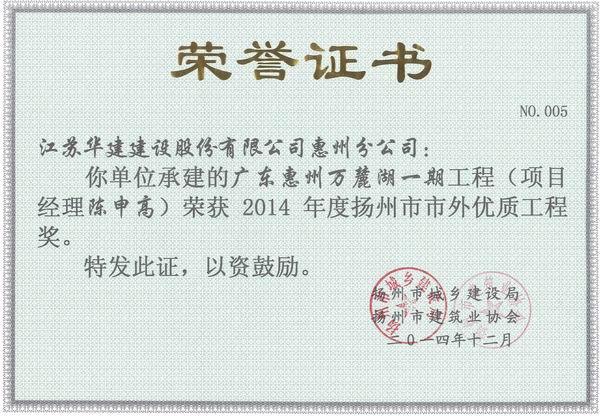 2015年揚州市市外優質工程獎