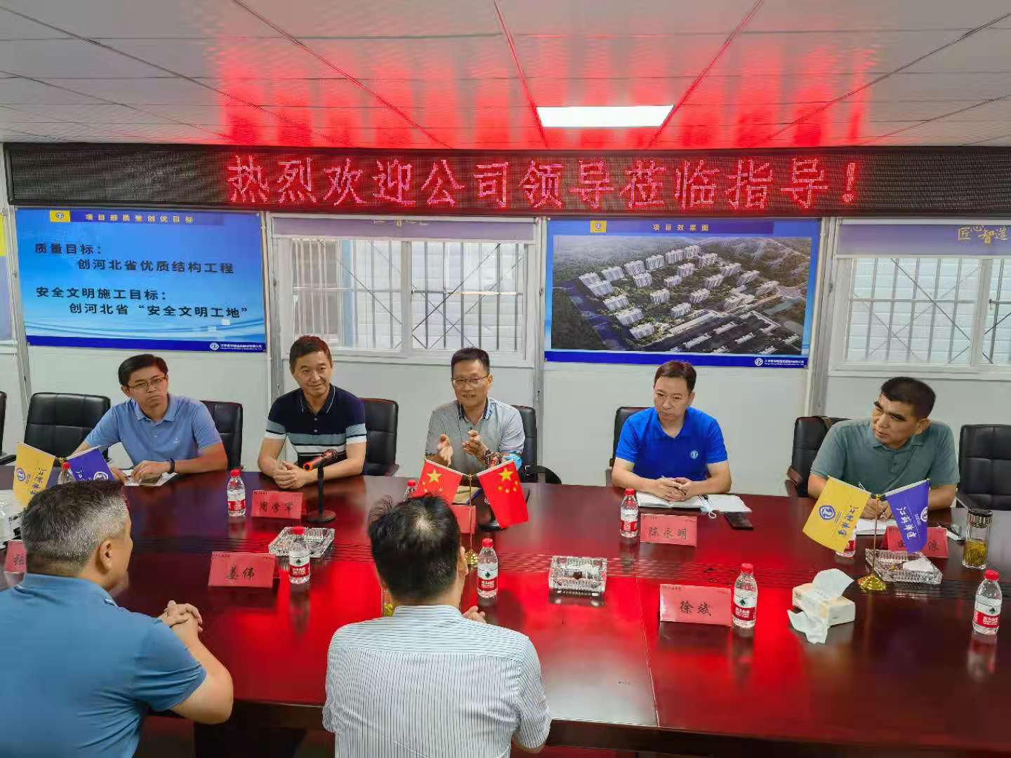 7月29日,北京公司總經理呂進、總工程師周學軍、總會計師陳永明、總經助田大浪、陸靖赴河北懷來七處花樣年項目部,深入開展項目管理交流研討活動。內蒙三處主任徐斌、柳州三處主任姜偉、七處主任沈法艮和裝飾處主任張永濤參加會議。