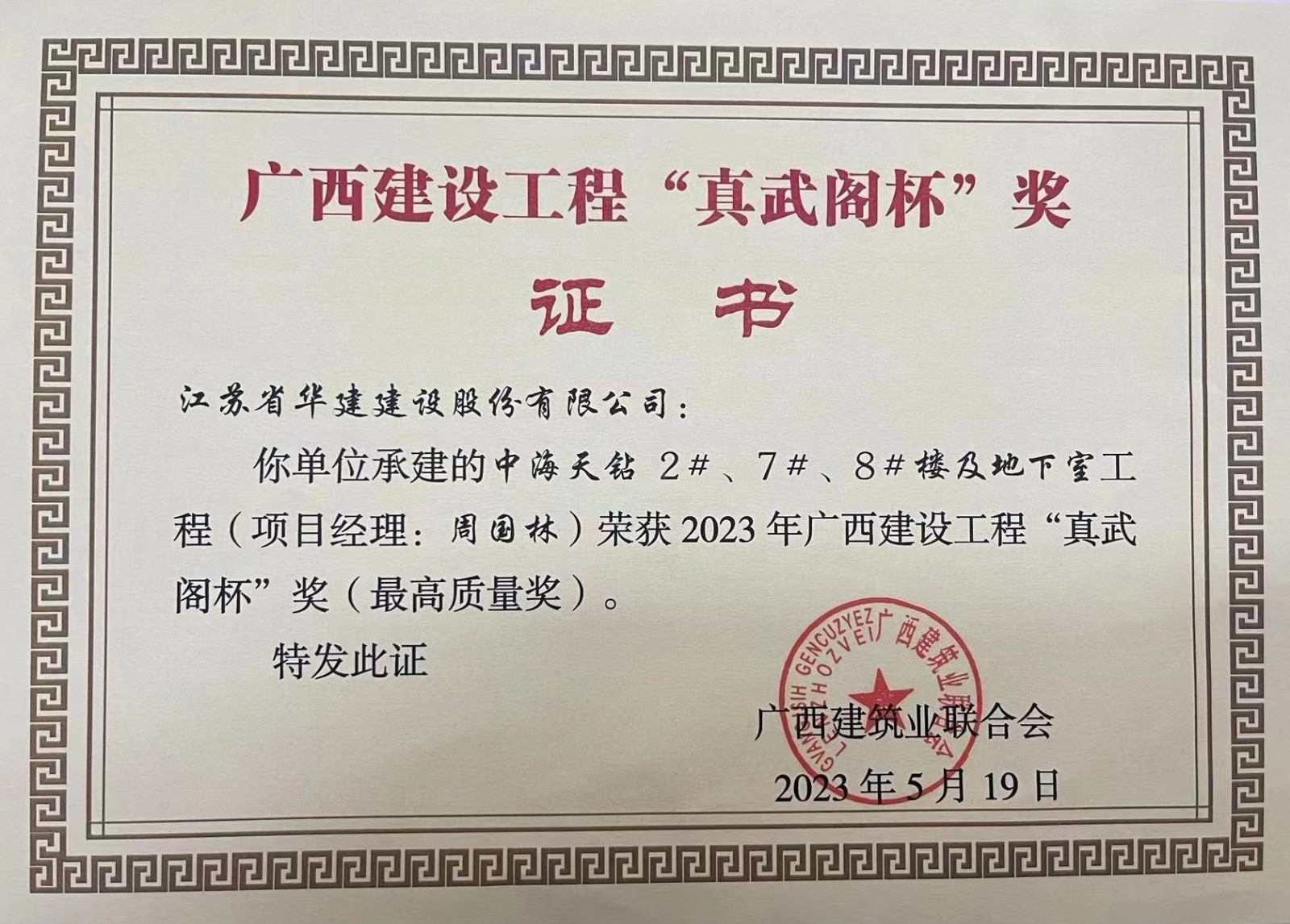 近日,廣西建筑業聯合會網站公布了《關于公布2023年廣西建設工程“真武閣杯”獎(最高質量獎)工程名單的通知》,由公司承建的中海天鉆3#、5#、6#樓及地下室工程、中海天鉆2#、7#、8#樓及地下室工程名列榜單。下一步,公司將進一步提高創新創優意識,提升項目精細化管理水平,以匠心精神打造更多優質工程,持續擦亮華建品牌。
