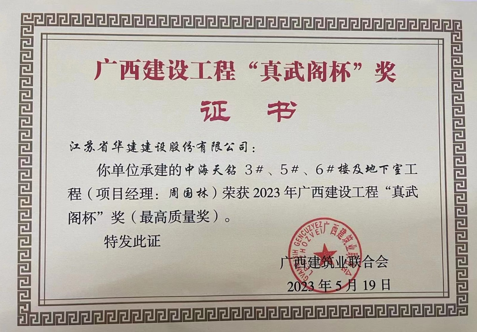 北京分公司兩項工程榮獲2023年廣西建設工程“真武閣杯” 獎(最高質量獎)