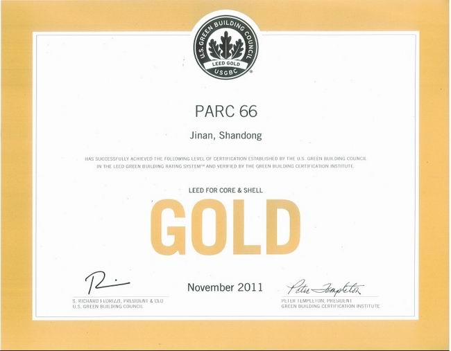 濟南恒隆廣場發展項目座落于山東省濟南市歷下區,項目用地面積約為52600m2,東至天地置業、西至榜棚街、南至黑虎泉西路、北至泉城路。恒隆廣場發展項目包括2座7層高之裙樓,裙樓之下為2層地下室。總建筑面積約為240000m2,高度不超過50m。其中:地上總建筑面積約為160000m2,主要為購物商場、商鋪和餐飲;地下2層及地下1層作為停車場、主要機電房及人防區域,總建筑面積約為80000m2。東、西裙房的三/四/五/六頂層有鋼結構連廊相通。該工程創山東省“泰山杯”,被美國綠色建筑委員會(USGBC)評選為LEED金獎,還榮獲“2011年度全國建設工程優秀項目管理成果獎”,同時被中建協評為2012-2013年度中國建設工程魯班獎(國家優質工程)。