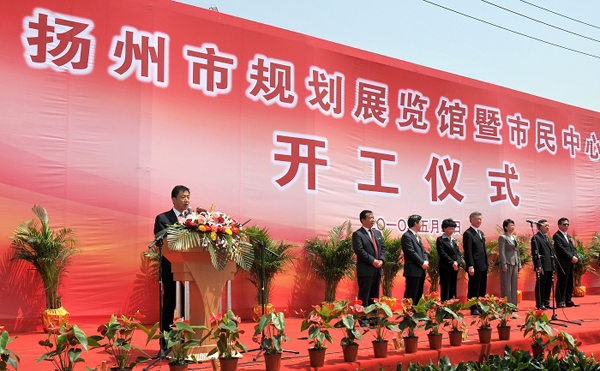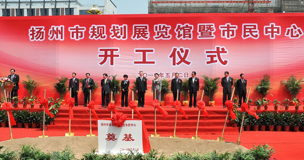 開工儀式由副市長陳揚(yáng)主持,市政府副秘書長、建設(shè)局局長王駿對項目具體情況作了介紹,建工控股董事長陸金龍代表建設(shè)代理方作表態(tài)發(fā)言,他提出要抓好三個方面的重點工作,一是舉全系統(tǒng)之力組建項目管理的精英團(tuán)隊,著力體現(xiàn)揚(yáng)州建筑大市的實力和水平。二是高起點規(guī)劃,高標(biāo)準(zhǔn)建設(shè),著力打造體現(xiàn)揚(yáng)州文化底蘊(yùn)、彰顯現(xiàn)代個性的標(biāo)志性建筑。三是切實加強(qiáng)組織領(lǐng)導(dǎo),著力展示建工系統(tǒng)干部職工的精神風(fēng)貌。市長謝正義代表市委、市政府致辭,他指出這個項目的建設(shè)對進(jìn)一步提升城市基礎(chǔ)設(shè)施建設(shè)水平,完善城市功能,提升城市品質(zhì),建設(shè)“創(chuàng)新?lián)P州、精致?lián)P州、幸福揚(yáng)州”,都具有深遠(yuǎn)和重要的意義。他對該項目提四點要求:一要深化方案,用城市客廳的理念,把這座建筑打造成揚(yáng)州新的建筑標(biāo)桿、節(jié)能的標(biāo)桿;二要嚴(yán)格管理,確保安全施工和工程質(zhì)量,爭創(chuàng)“魯班獎”;三要精心組織,確保工程進(jìn)度,力爭2011年底竣工;四要堅持原則,確保工程廉潔,大家平平安安。希望參與建設(shè)的各單位統(tǒng)一思想、明確目標(biāo),努力把揚(yáng)州市規(guī)劃展示館與市民中心建設(shè)成優(yōu)質(zhì)工程、品牌工程、民心工程,為建設(shè)精致?lián)P州增添一抹亮麗的風(fēng)景線。