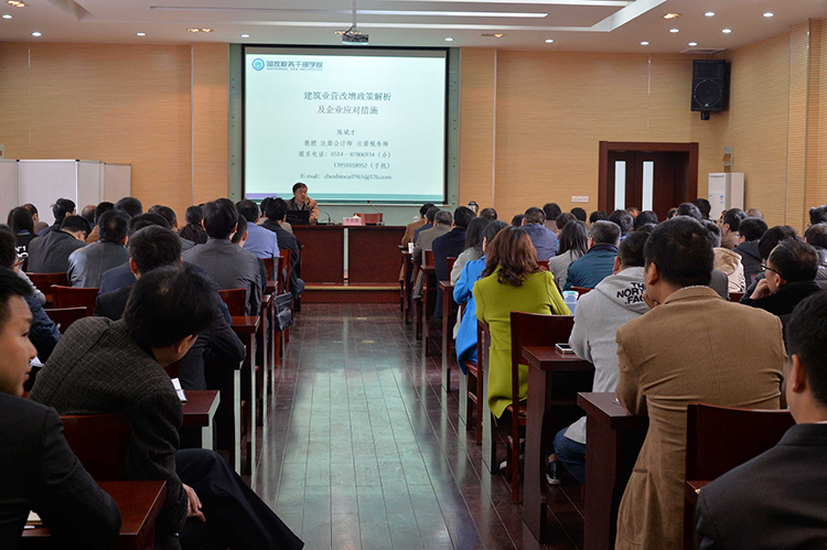 此次培訓(xùn)特邀市國(guó)家稅務(wù)學(xué)院陳斌才教授主講。陳教授就建筑業(yè)營(yíng)改增政策及企業(yè)應(yīng)對(duì)措施作了專業(yè)分析和講解,并與參人員進(jìn)行了互動(dòng)交流,使參培人員對(duì)建筑業(yè)營(yíng)改增有關(guān)政策有了更深刻的理解和認(rèn)識(shí),達(dá)到了預(yù)期效果。
