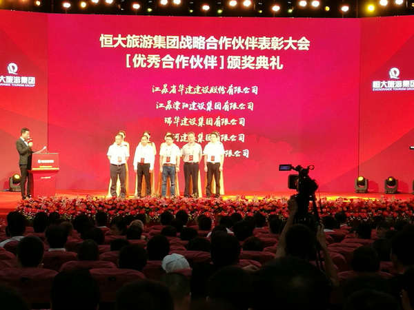 我司被恒大旅游集團評為“優秀合作伙伴” 時間:2017-08-18 3439 7月30日,恒大旅游集團在海南儋州海花島隆重舉辦“恒大旅游集團戰略合作伙伴表彰大會暨海花島動工兩周年慶”。我司憑借與恒大旅游集團的良好合作,被授予“優秀合作伙伴”稱號,公司項目經理呂正喜被評為“優秀項目經理”。公司副總、海南公司總經理陸俊代表公司參會并上臺領獎。 另:恒大旅游集團對正在主體施工的單位進行了2017年第二季度綜合評價,我司以綜合得分82.32分位列21家戰略合作伙伴之首。 (生小荃)