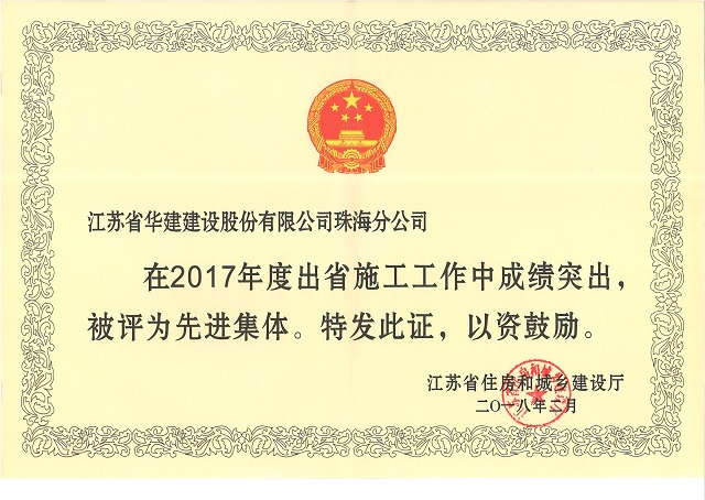 公司獲評“2017年度江蘇出省施工先進(jìn)集體”