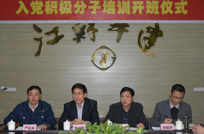 支部書記嚴正濤主持開班儀式并作動員講話。他指出,舉辦本次培訓班的主要目的就在于不斷壯大項目支部入黨積極分子隊伍,進一步提高其黨性修養和綜合素質,夯實黨員發展工作基礎。對參加本次培訓的入黨積極分子他提出三點要求:一是要明確學習目的,端正學習態度;二是要提高思想認識、端正入黨動機;三是要加強黨性鍛煉,爭取早日入黨。官盛鎮黨委書記李常兵結合個人工作實際,與參加培訓的入黨積極分子分享了作為一名共產黨員所肩負的使命和責任的心得體會。錢明書記則分別用三個“注重”來詮釋如何實現從一名積極分子成長為一名合格共產黨員的轉變,即注重踐行宗旨,注重自覺奮進,注重建功立業。