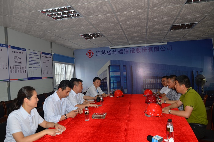 在項(xiàng)目現(xiàn)場(chǎng)會(huì)議室,雙方就項(xiàng)目推進(jìn)工作進(jìn)行了座談。項(xiàng)目負(fù)責(zé)人袁紅如介紹了珠海航空標(biāo)準(zhǔn)件倉(cāng)儲(chǔ)基地工程的施工進(jìn)展情況。繆國(guó)樞總經(jīng)理表示江蘇華建會(huì)以特級(jí)企業(yè)的標(biāo)準(zhǔn),保質(zhì)保量地完成施工任務(wù),為中航在珠海打造一項(xiàng)精品工程,從而為雙方的進(jìn)一步合作創(chuàng)造一個(gè)良好的開(kāi)端。黃勇峰總經(jīng)理對(duì)項(xiàng)目的施工進(jìn)展和現(xiàn)場(chǎng)管理給予了高度評(píng)價(jià),期待與江蘇華建在珠海城市建設(shè)中進(jìn)一步攜手合作、共同發(fā)展。
