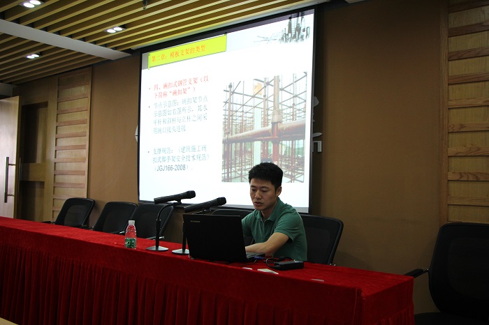 會上,安全設(shè)備處主任丁瑞華、副主任陳榮就腳手架和模板支架搭設(shè)具體細(xì)節(jié)實(shí)施、施工現(xiàn)場存在的問題等,以圖文并茂的形式展示了關(guān)鍵點(diǎn)與控制要領(lǐng),使培訓(xùn)人員對腳手架搭設(shè)和模板支架搭設(shè)安全控制點(diǎn)更加清晰明朗。盧總分享了北京綠色施工和公司魯班獎項(xiàng)目考察學(xué)習(xí)的經(jīng)驗(yàn)感悟,就其中珠海公司可以借鑒學(xué)習(xí)的部分做了深入細(xì)致的講解,他激勵大家要以魯班精神打造華建的精品工程。
