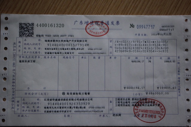 5月31日,財(cái)務(wù)處成功開(kāi)具了第一張?jiān)鲋刀?/SPAN>普通發(fā)票,此票為公司第五項(xiàng)目部承擔(dān)施工任務(wù)的晉和天慶花園總承包工程使用,走出了公司“營(yíng)改增”工作的堅(jiān)實(shí)一步。