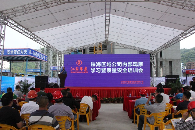 10月16日下午,珠海公司在晉和天慶花園二期項目部舉行內(nèi)部觀摩學(xué)習(xí)暨質(zhì)量安全培訓(xùn)會。珠海區(qū)域公司、重慶分公司各工程處、直管項目部項目經(jīng)理、技術(shù)、安全負(fù)責(zé)人80余人參加了培訓(xùn)會。