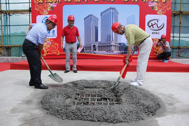 橫琴隆義廣場實現主體結構全面封頂 時間:2017-08-18 3607 2017年8月18日,第五項目部承擔施工任務的橫琴隆義廣場項目舉行主體結構封頂儀式。珠海橫琴隆義國際投資有限公司董事長馬國義,珠海公司黨委書記繆國樞、總工程師周學軍、總會計師馮喜平及設計單位、參建單位、監理單位等50余人共同見證這一喜悅時刻。 該工程自開工籌備以來即被列為我公司重點創優項目,截止目前已獲評珠海市安全文明示范工地;通過廣東省安全文明示范工地初評;通過全國綠色施工示范工地過程驗收。較好地展現了我公司的綜合實力及企業形象。