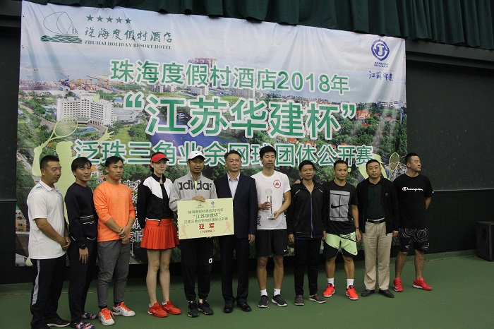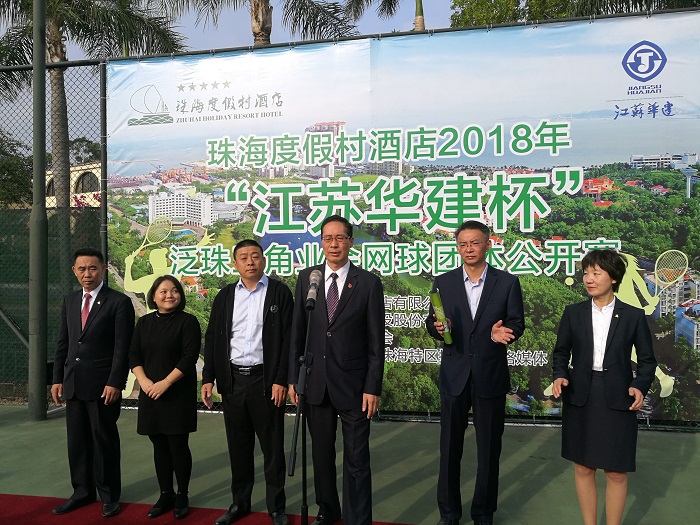 24-25日,2018江蘇華建杯泛珠三角業余網球公開賽在珠海度假村網球場開賽,來自香港、澳門、廣州、佛山、深圳、珠海、中山、江門、肇慶的16支代表隊近200名男女高手在珠一決高下。他們代表著國內業余網球較高水平。珠海區域公司總經理呂方達和珠海度假村酒店董事長李增利共同為比賽開球,并在比賽結束后為獲獎球隊頒獎。