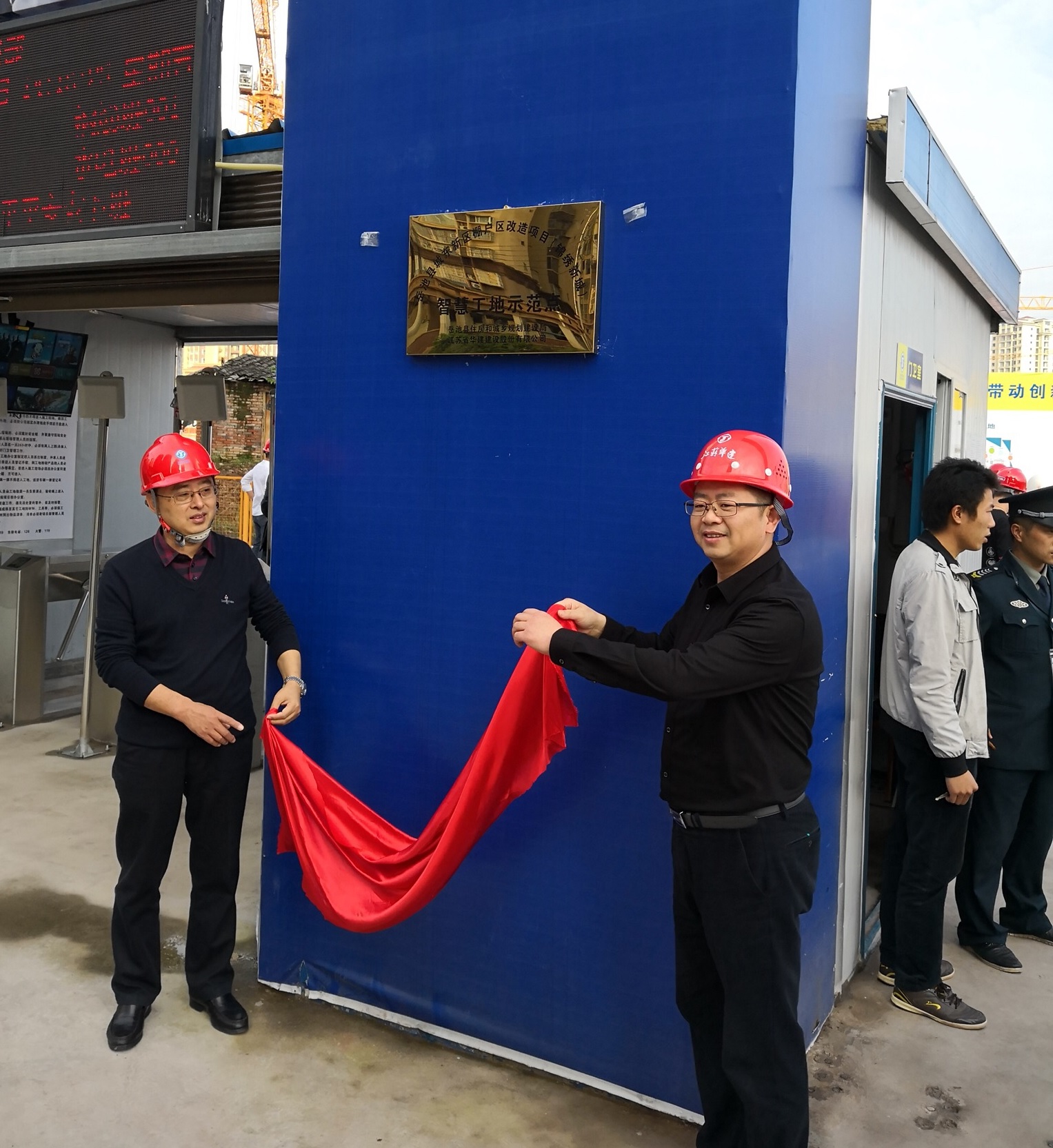 隨后,嚴正濤總經理和陳宗春局長共同為錦繡新城智慧工地示范點揭牌。
