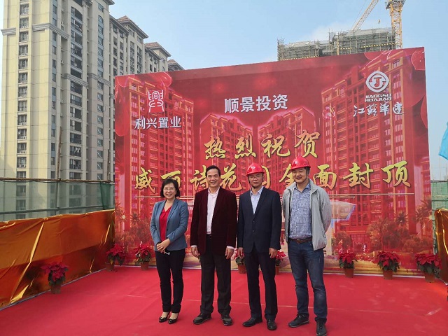 陽江威麗詩花園2期項目全面提前封頂 時間:2019-01-15 2753 2019年1月14日,第一項目部承擔施工任務的陽江威麗詩花園2期項目提前60天實現主體結構全面封頂。珠海利騰集團董事長黃金紅、總經理譚劍云,江蘇華建珠海區域公司總經理呂方達等參加封頂儀式。 威麗詩花園2期8~10棟住宅及地下室、12~15棟住宅及地下室、16棟住宅及地下室(含商業裙樓)、17~18棟住宅及地下室、19棟住宅及地下室(含商業裙樓)土建及水電安裝工程。該工程含商住樓共11棟,其中地下室建筑面積約34378平方米、地上建筑面積約127468平方米,總建筑面積約161847平方米。